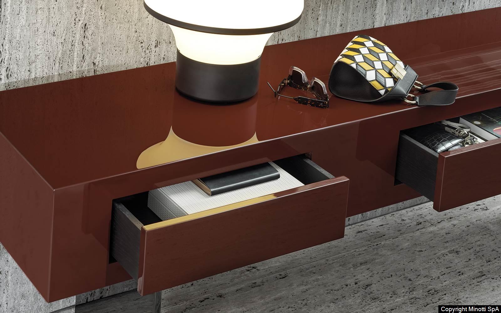 Some Solid coffee tables are equipped with drawers, featuring an open Moka oak and a push & pull opening system. Coffee tables that offer useful storage solutions, featuring drawers with a perfect aesthetic that almost makes them imperceptible.