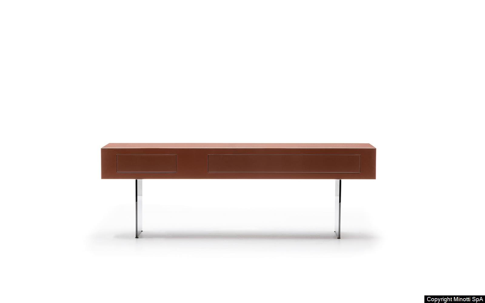 This version also comes in saddle-hide, crafted with the same technique used in fine leather luggage-crafting, where every side is trimmed with precise stitching along the edges that enhance the preciousness of the furnishing element as a whole.