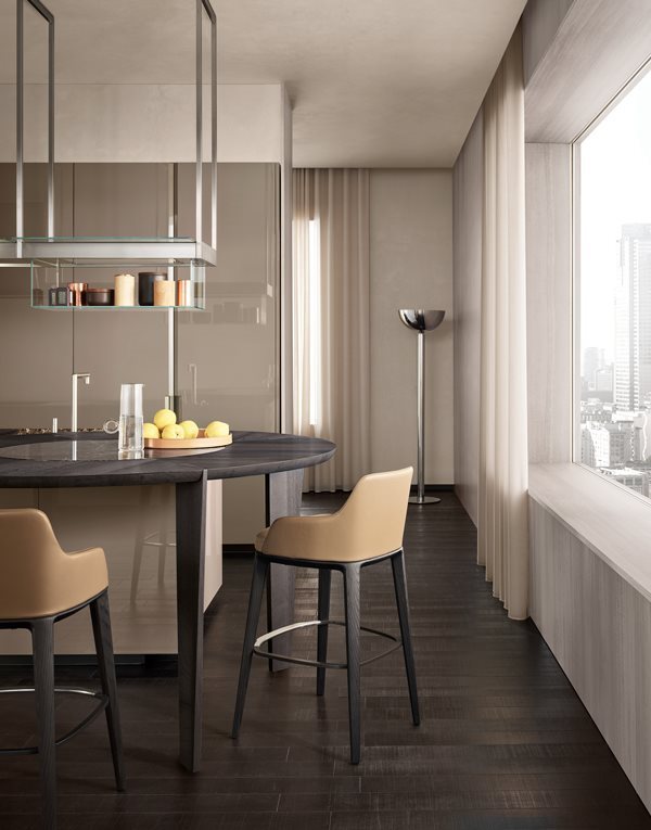 After the famous Grace, here is her sister Sophie. Despite its elegant silhouette you remember the shapes of Grace, Sophie, design Emmanuel Gallina, offers a seat with enveloping proportions and generous dimensions. The detail of the design of the armrest delicately underlines the concept of hospitality, in contrast with the fine lines of the structure. Also available in the stool version, it is characterized by particular attention to the details of the seam, to the wooden structure and to the design of the footrest.