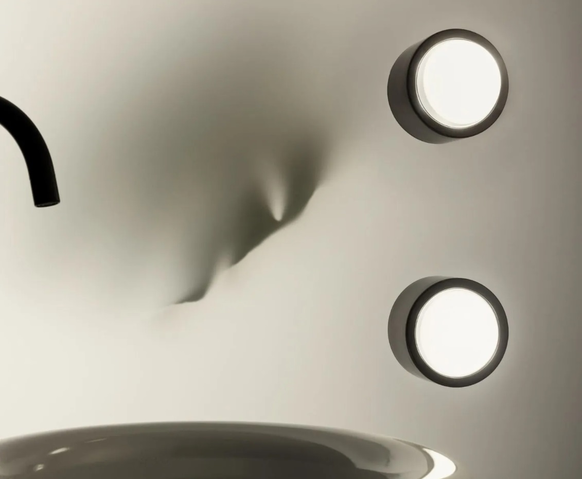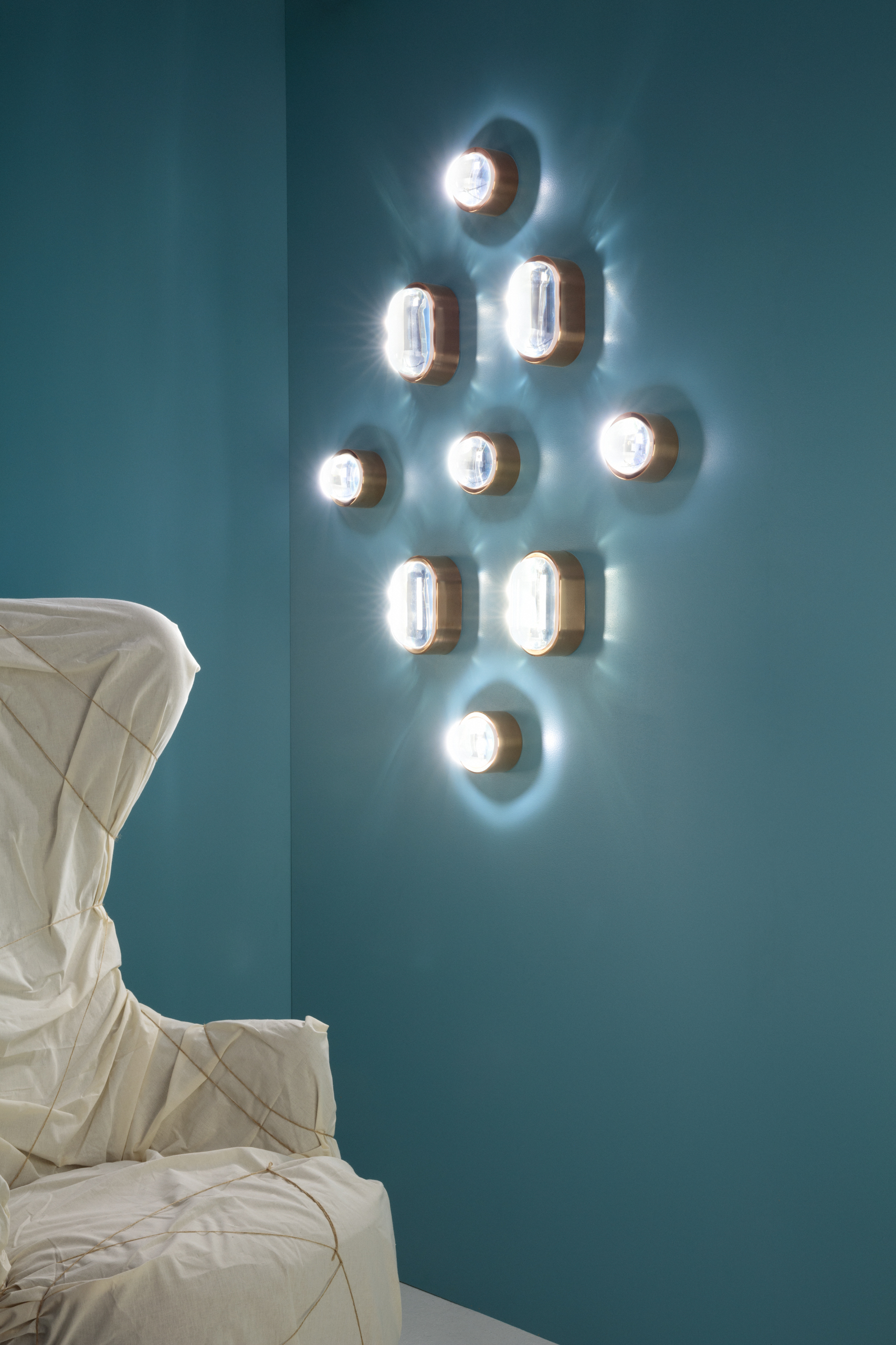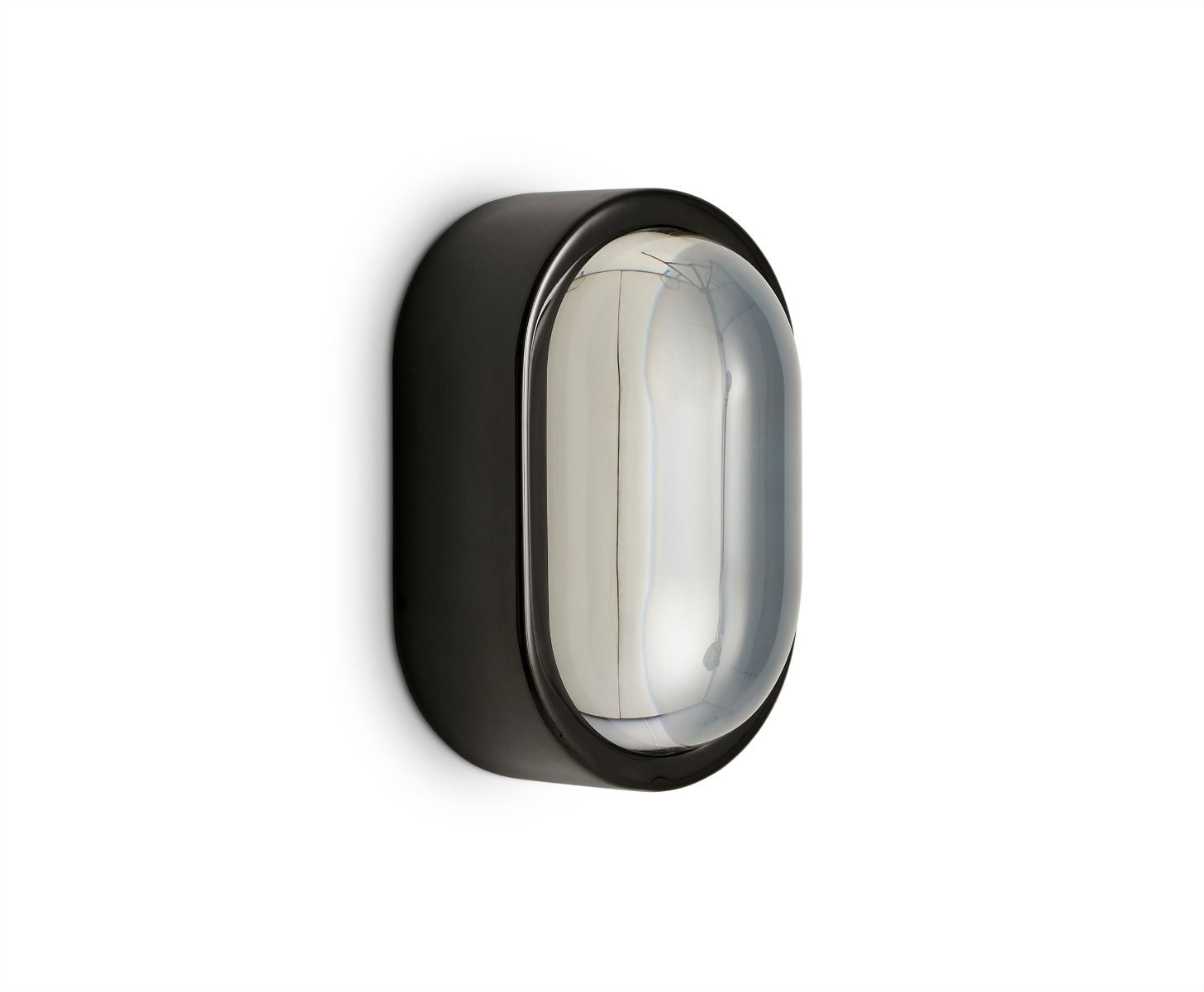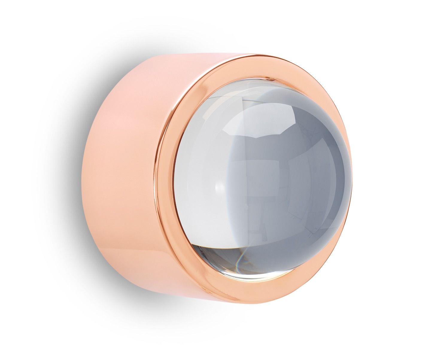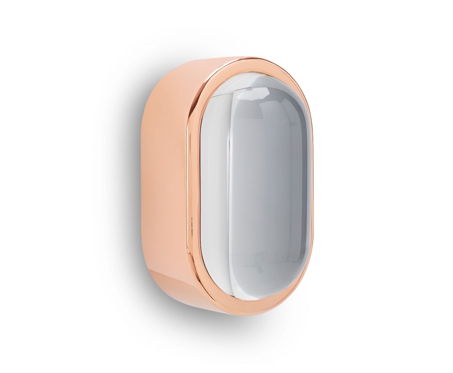 Framed in a plated stainless-steel surround, Spot Surface is a massively thick glass lens designed to refract the light of integrated LEDs. Spot is IP44 rated as a wall light. Available in high-shine copper and glossy black. Available in Round 3.5W and Obround 5.5W integrated LED. Not dimmable.