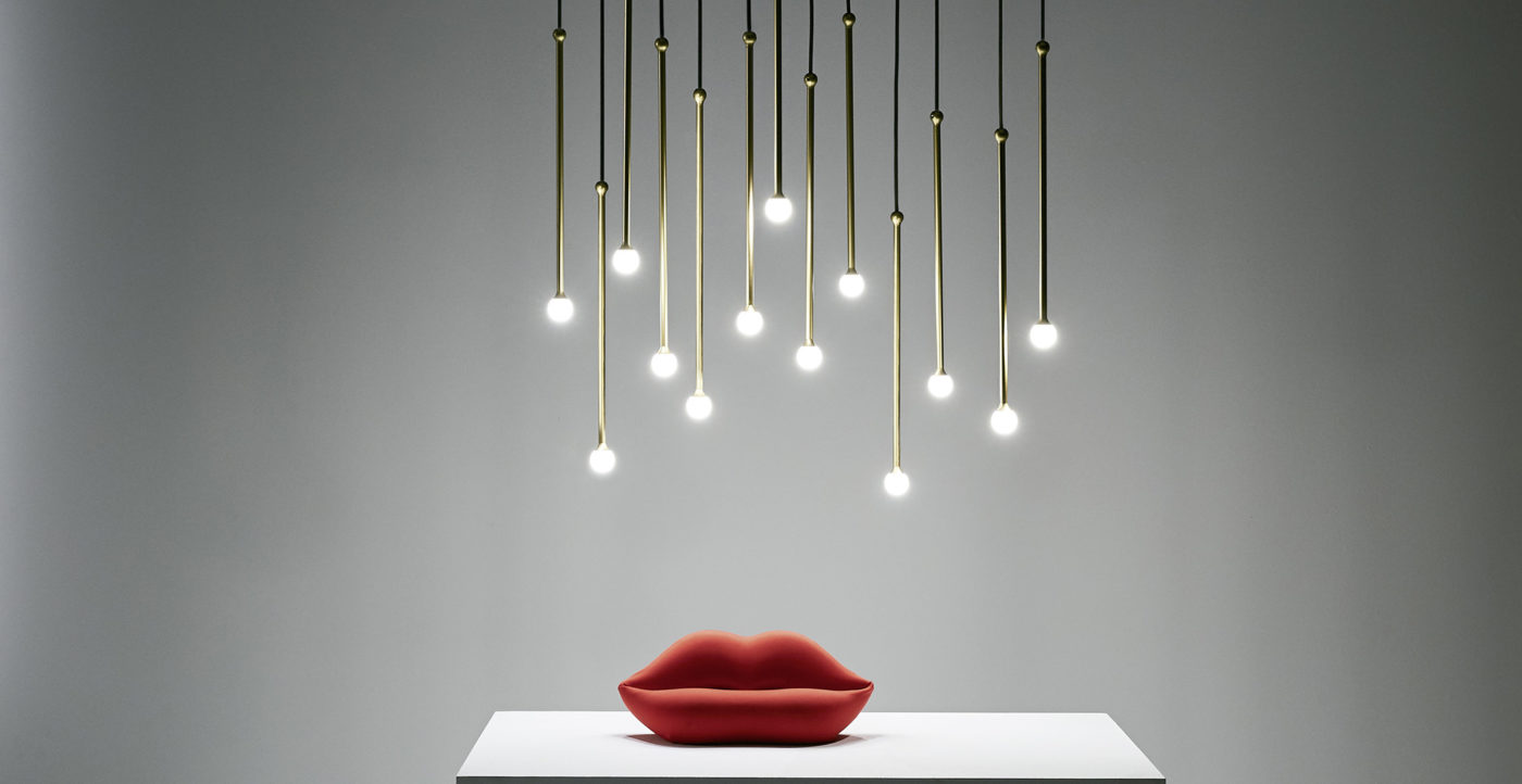 Thin stems in precious metallic finishes create evocative harmonies of light.