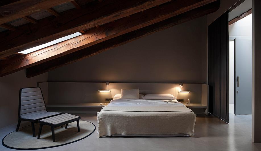 The Suite wall lights are the work of designers Jordi Vilardell & Meritxell Vidal. Depending on the type of light required Vibia offers the user up to six different models of wall lights to choose from depending on the specific requirements of each individual lighting project. The Suite wall light is available as a simple shelf and luminous stone-like object, as a shelf with a reading lamp or as just a shelf. All models feature a LED light source.