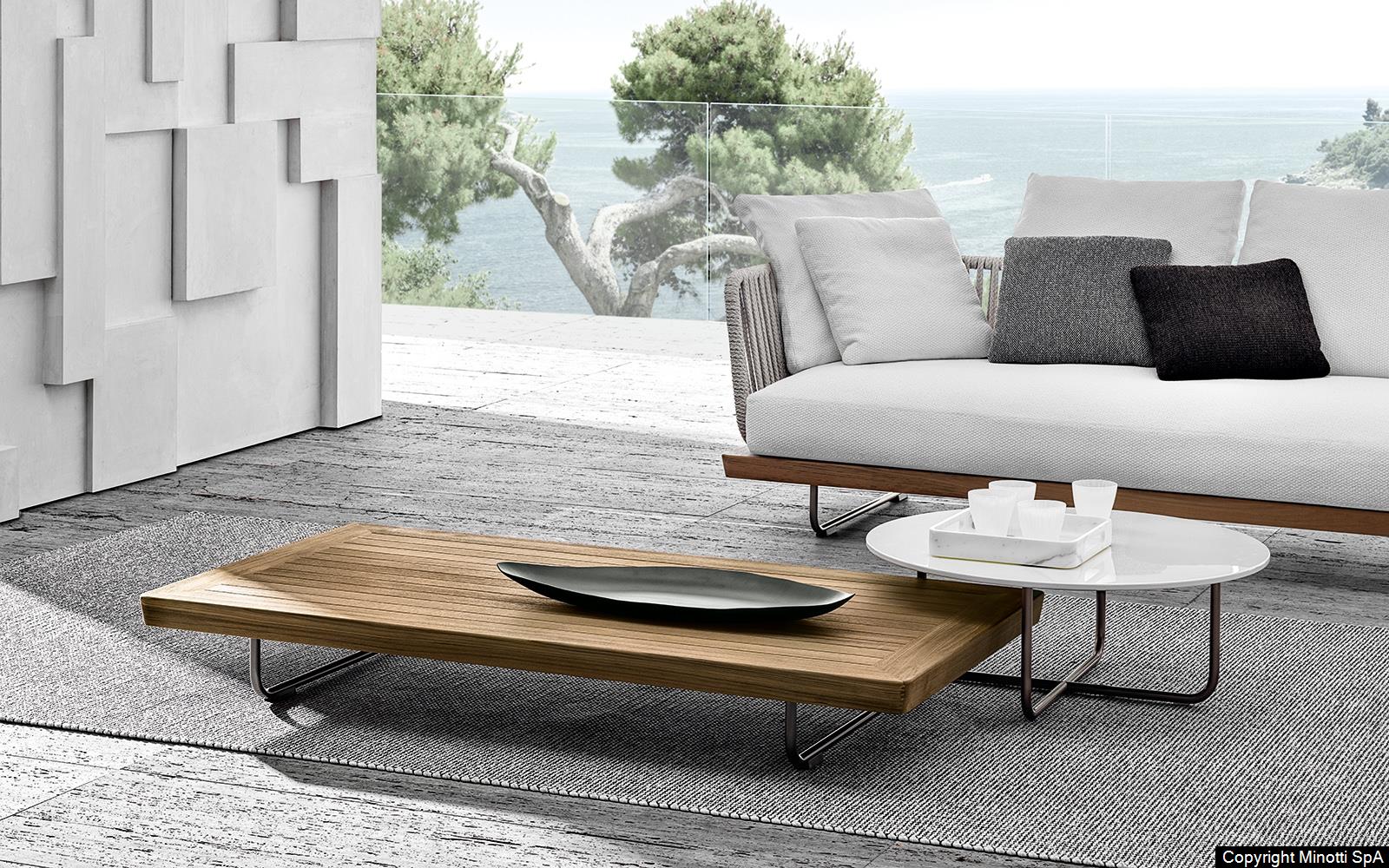 The Sunray Meg family hosts a series of versatile, practical coffee tables in various sizes and heights that blend in perfectly with the most diverse compositions of the Outdoor collection.