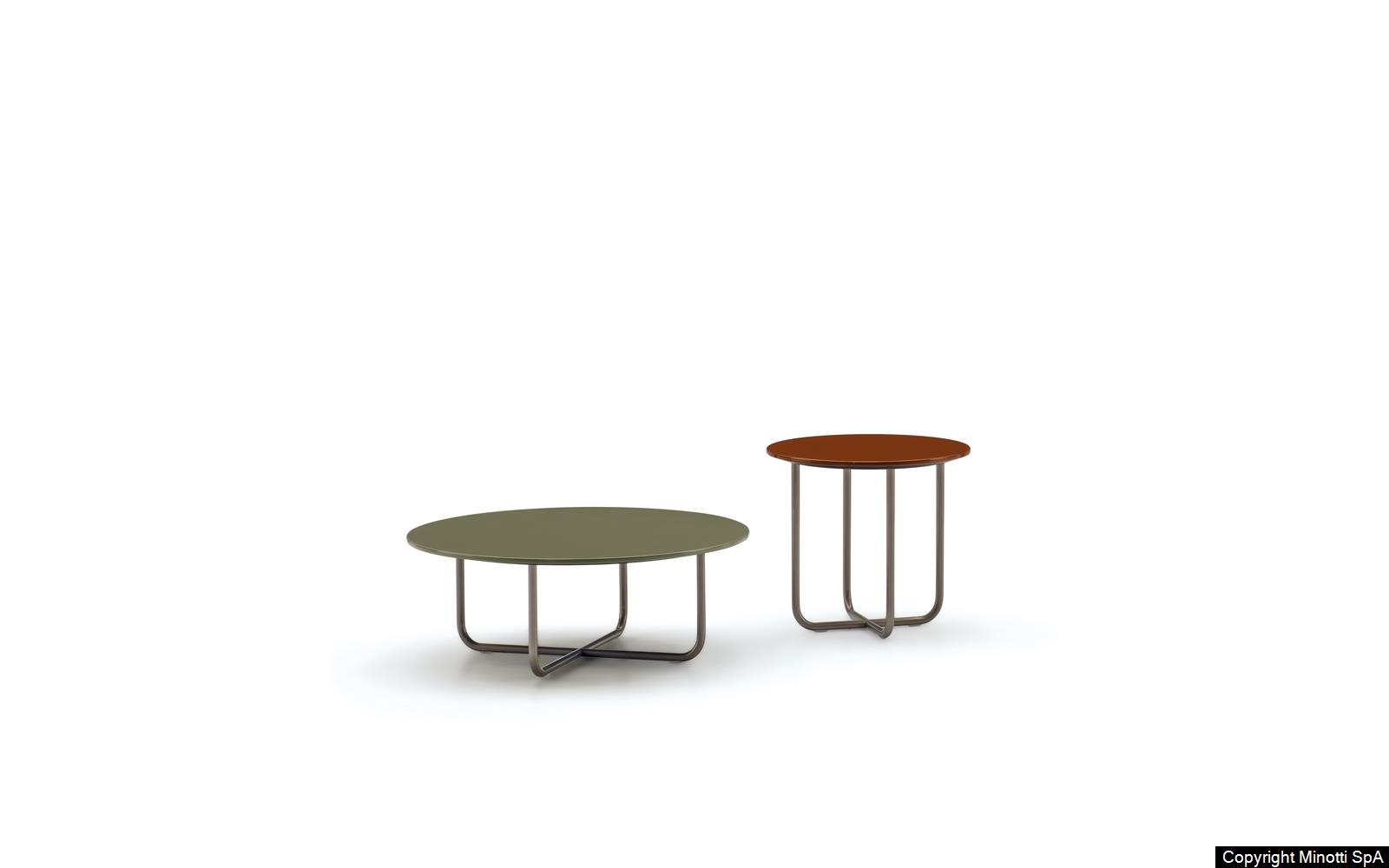Its distinctive feature is the colour of the top in stratified HPL laminate, available in glossy lacquered White, Rust and Khaki Green finishes, blending in seamlessly with the palette of the outdoor textile collection.