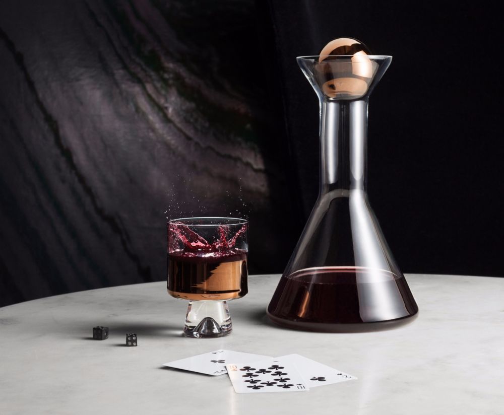 A Tank Decanter for your finest wines, presented in gift-worthy packaging. Mouth-blown and ornamented with hand-painted copper detailing this pairs ideally with our Tank Wine Glasses or items from our Plum cocktail range. Available in Copper and Black colours.