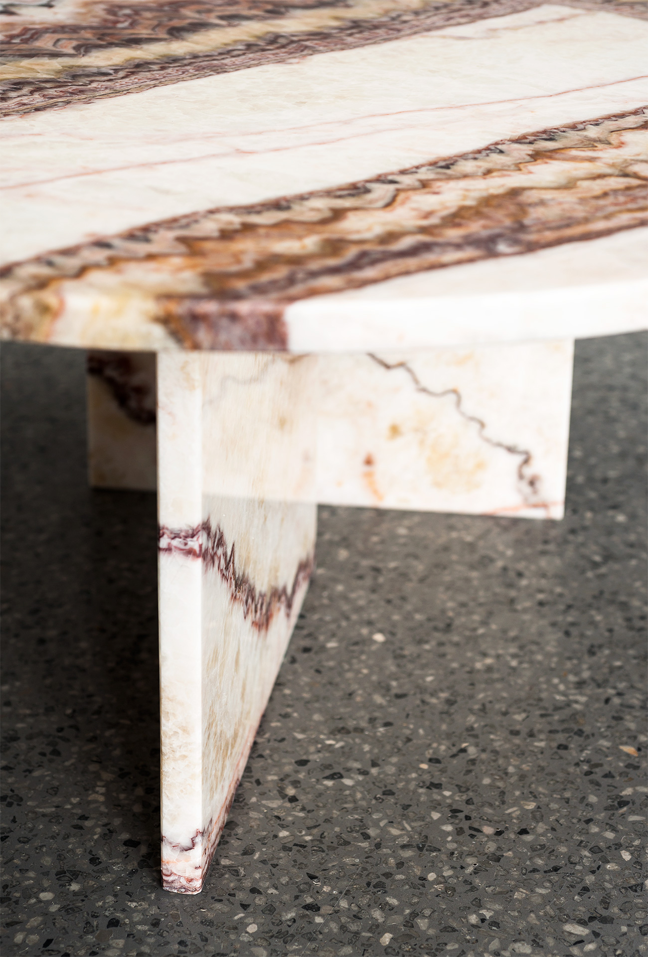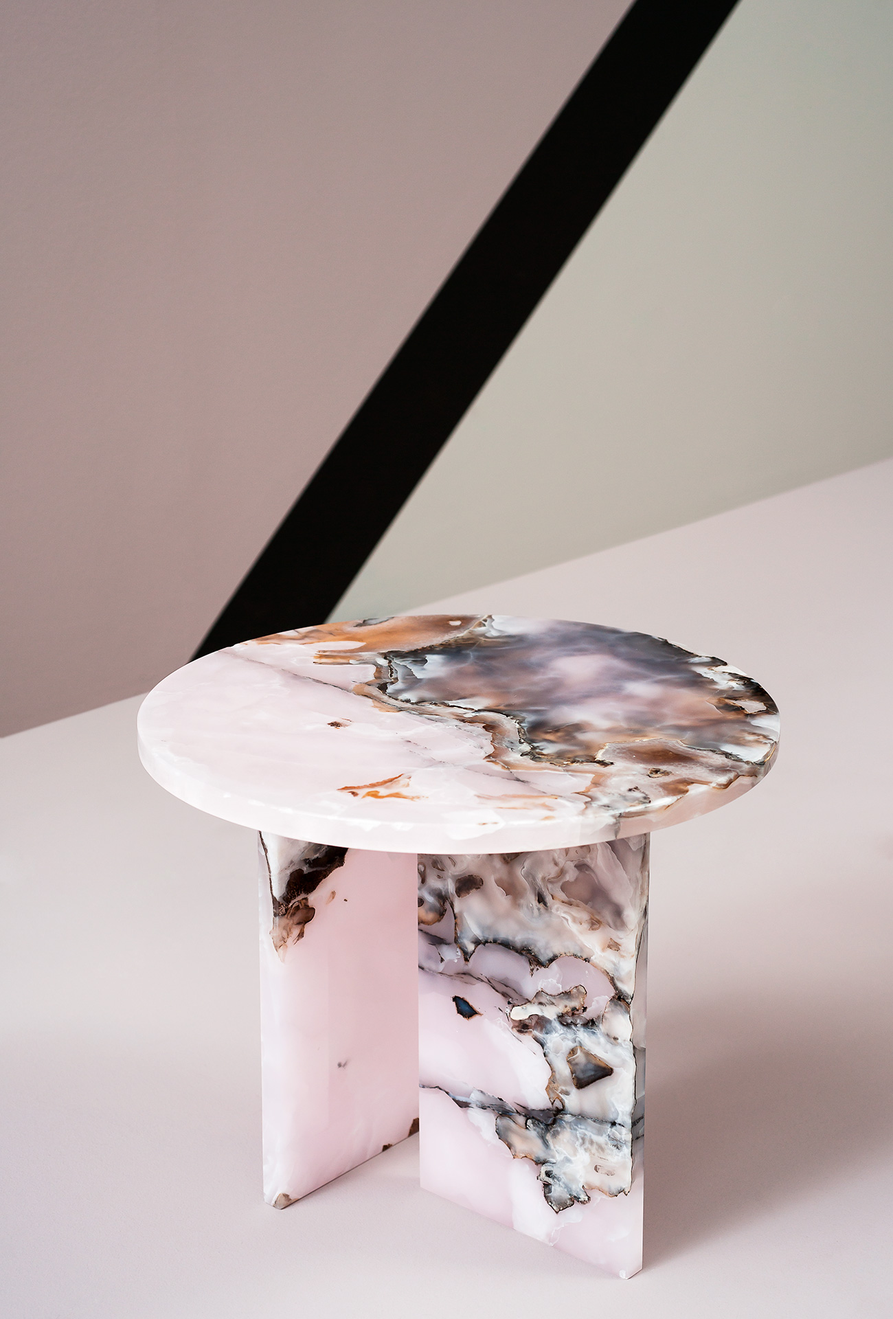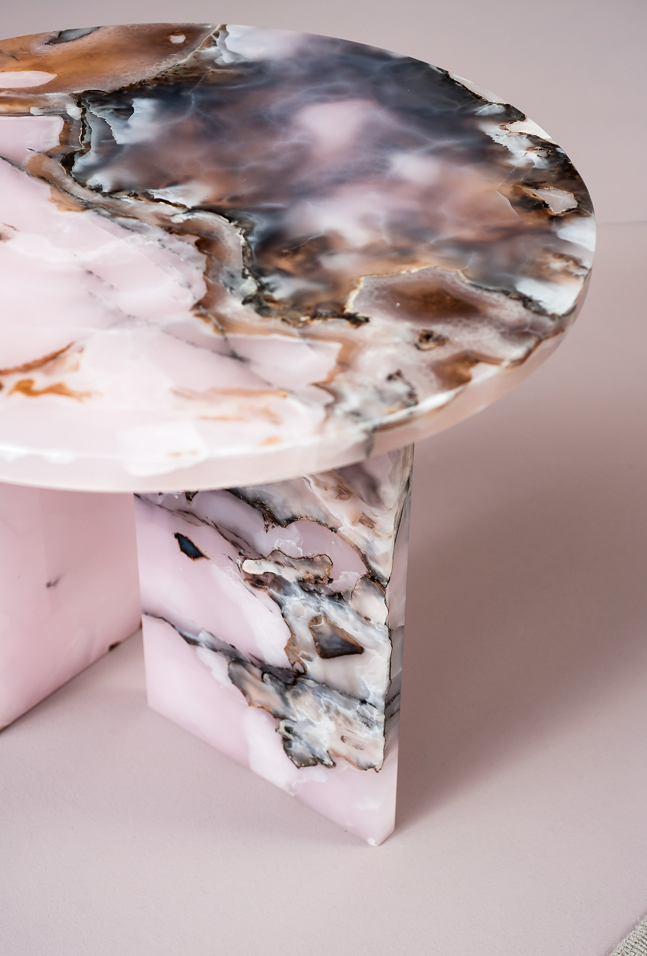 Legs and top carried out in Pink Onyx. Natural polished top with water repellent protection.