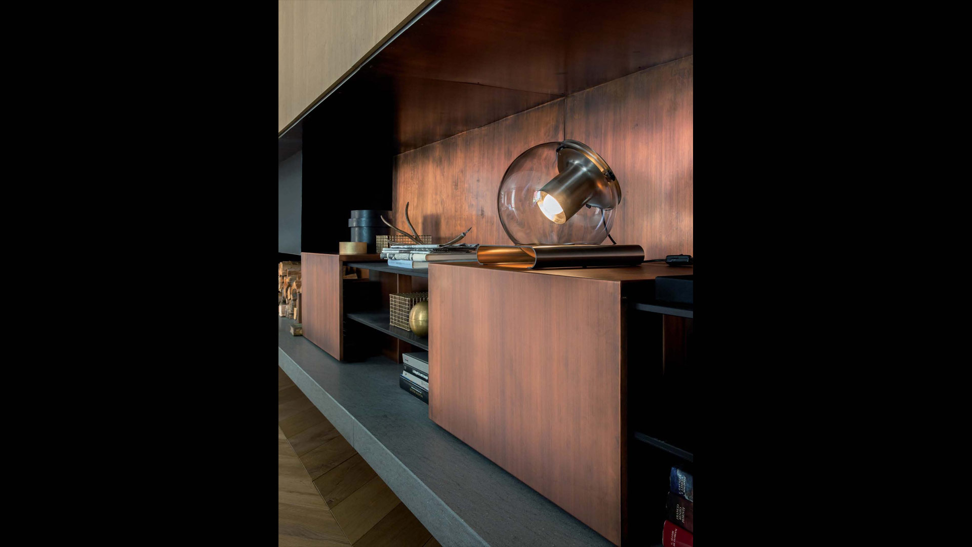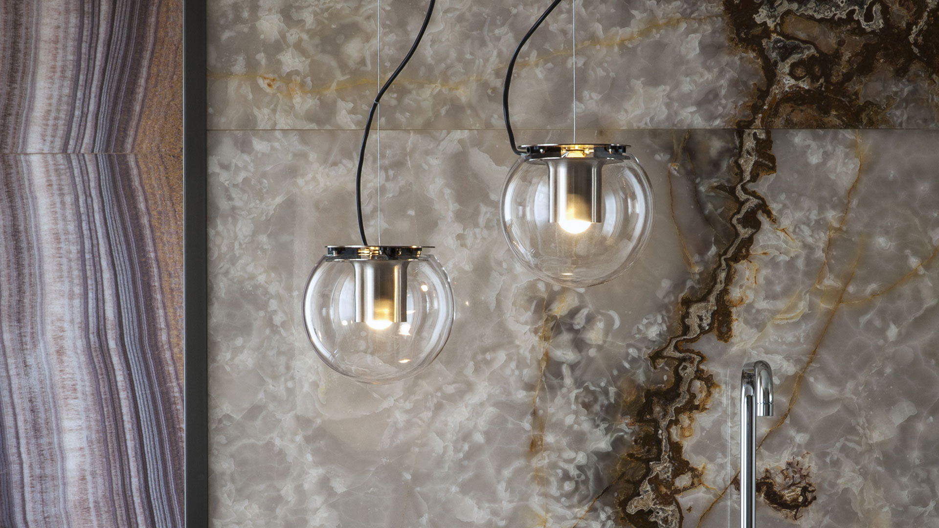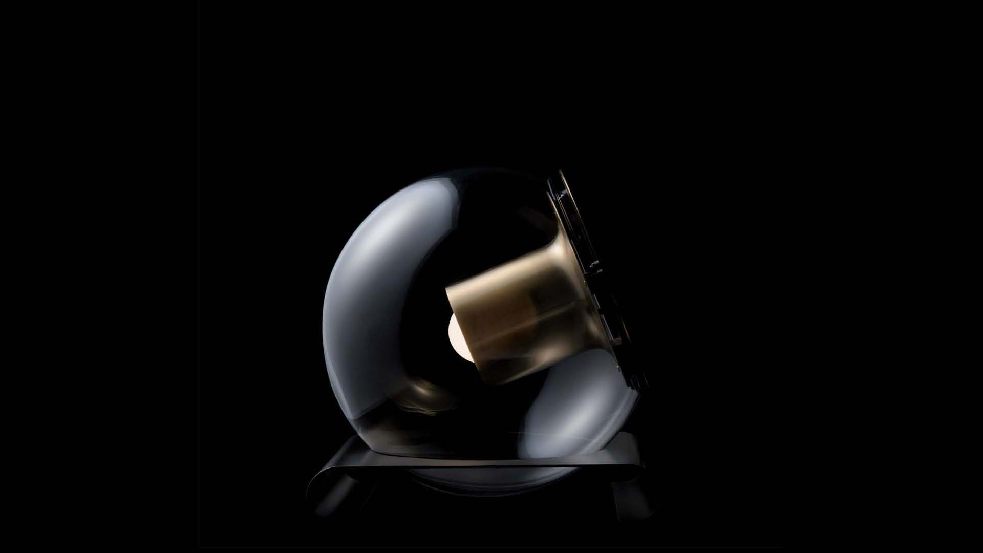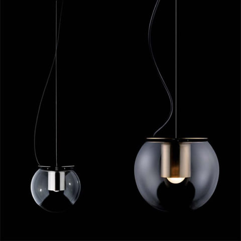 The Globe is a lamp which was designed by Joe Colombo in 1964, created in table, suspension and wall lamp versions, available in two sizes. Its pure geometries co-exist in a constant balance between shape and functionality: the transparent blown-glass sphere contains the cylindrical metal reflector that projects its timeless light into space.
