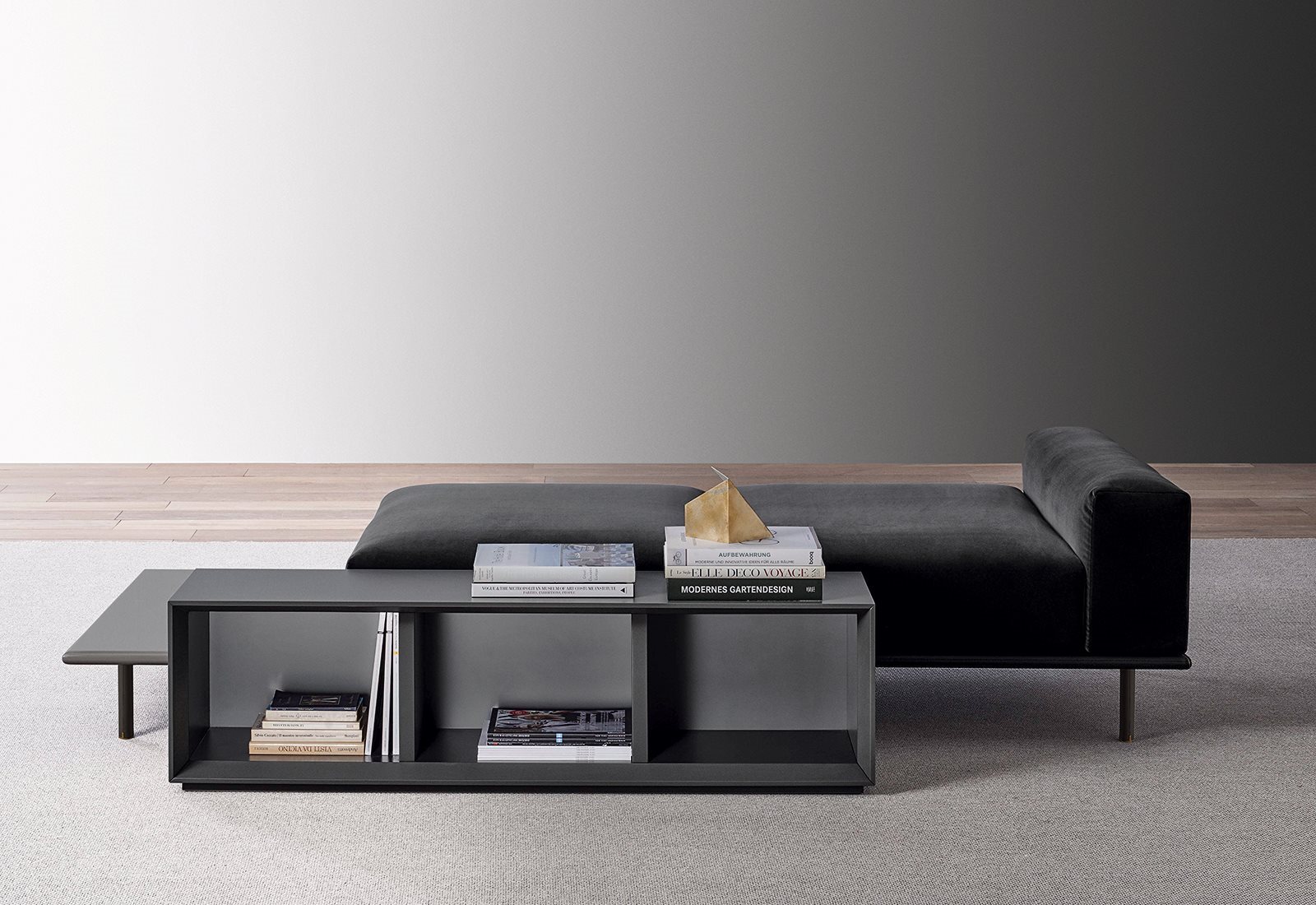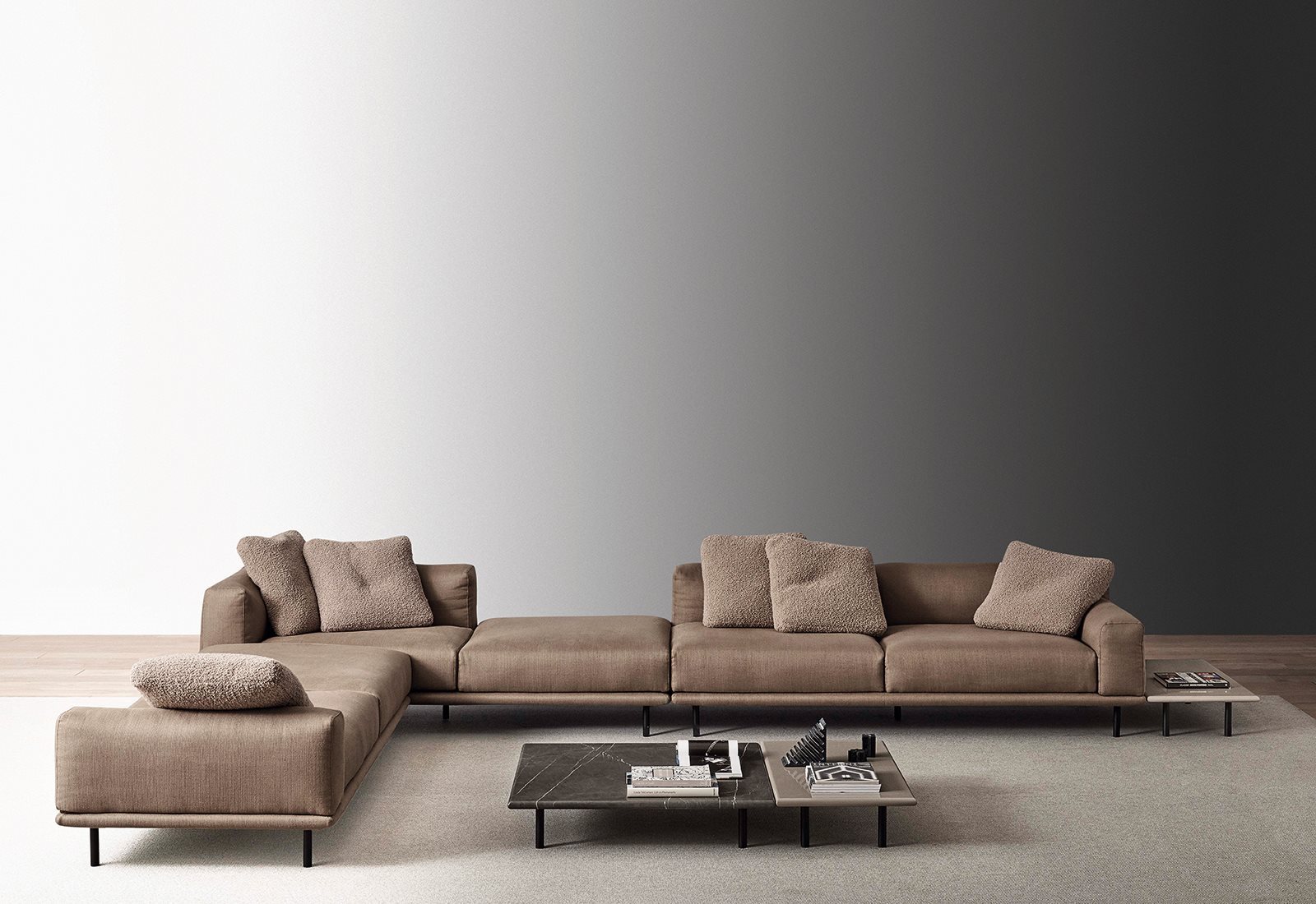 Modular units distinguished by elegant proportions, soft cushions and geometric lines.