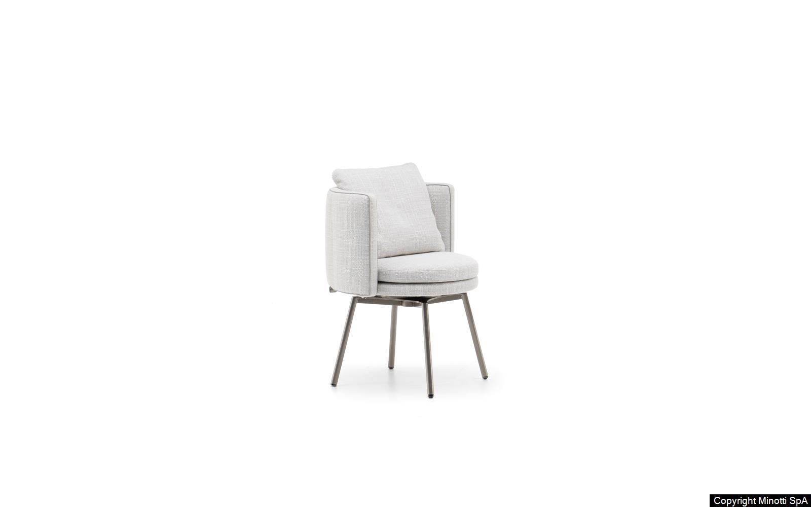 The armchairs and swivel armchairs in the form of a perfect circle were designed to meet a variety of requirements, both in terms of functionality and ergonomics, available in a range of different types. The seats – in the Bergère, Large, Medium and Small versions – and the Dining, Dining Large and Lounge little armchairs are the result of the in-depth research carried out to find the best way to express the sophisticated simplicity of the craftsmanship. The base is available in leather or fabric.