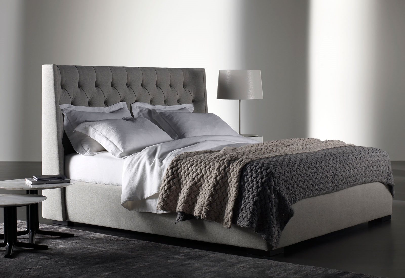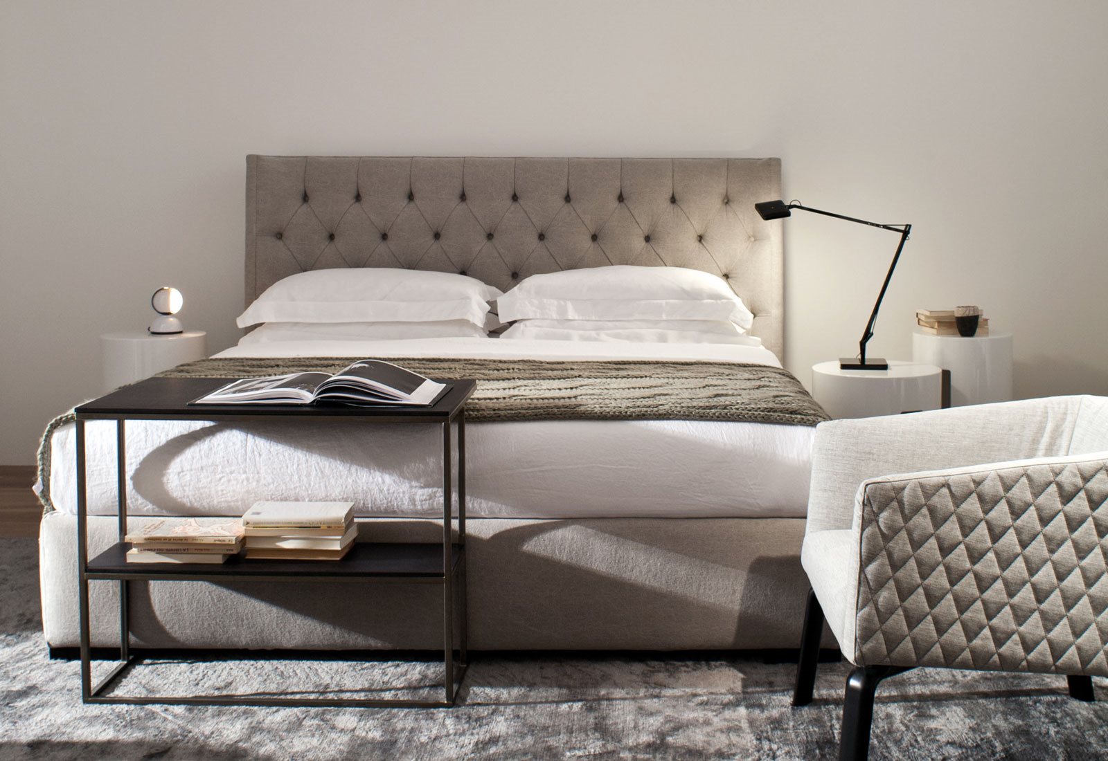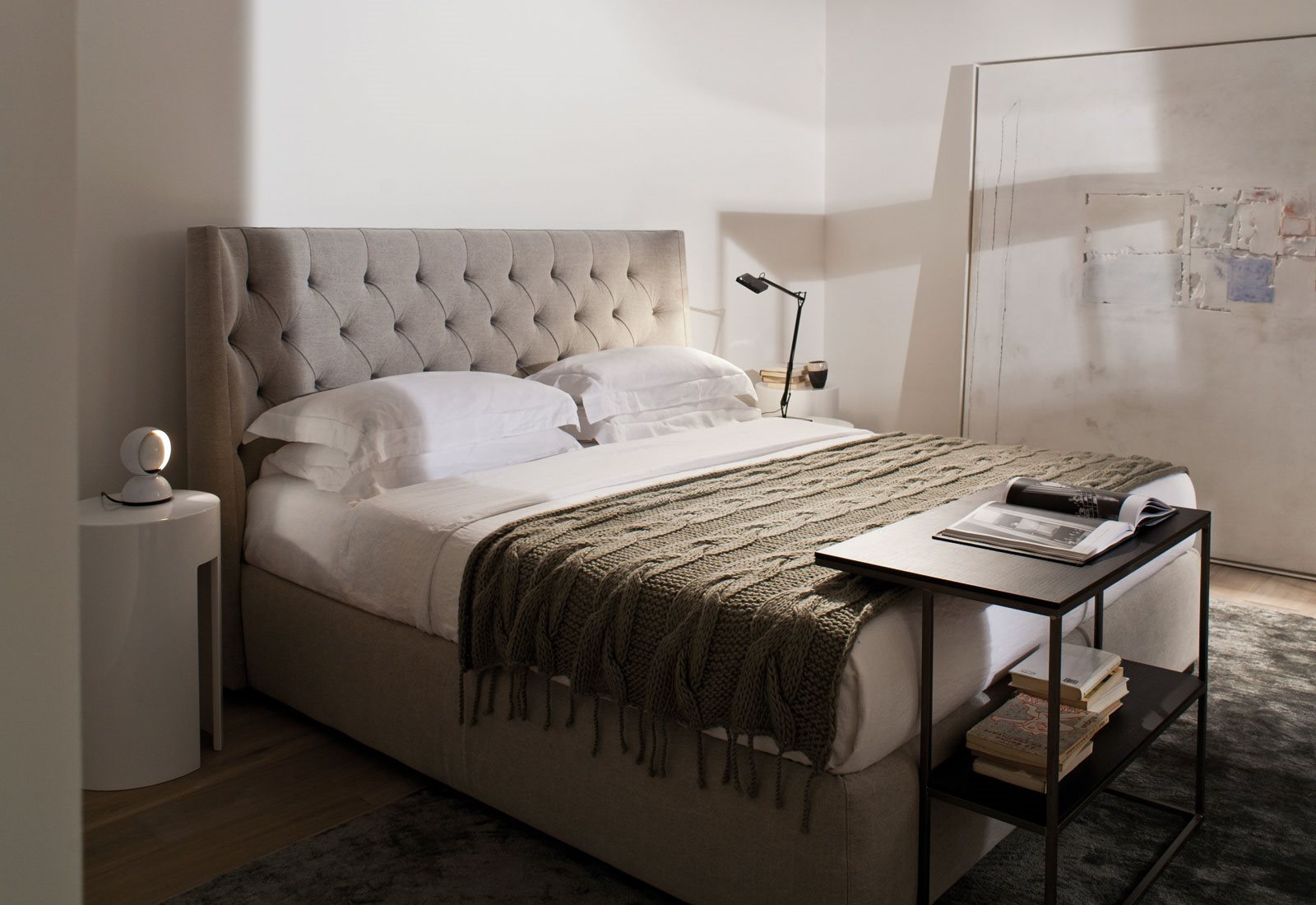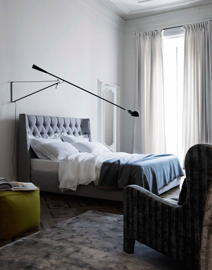 Upholstered bed, headboard with quilted not removable cover