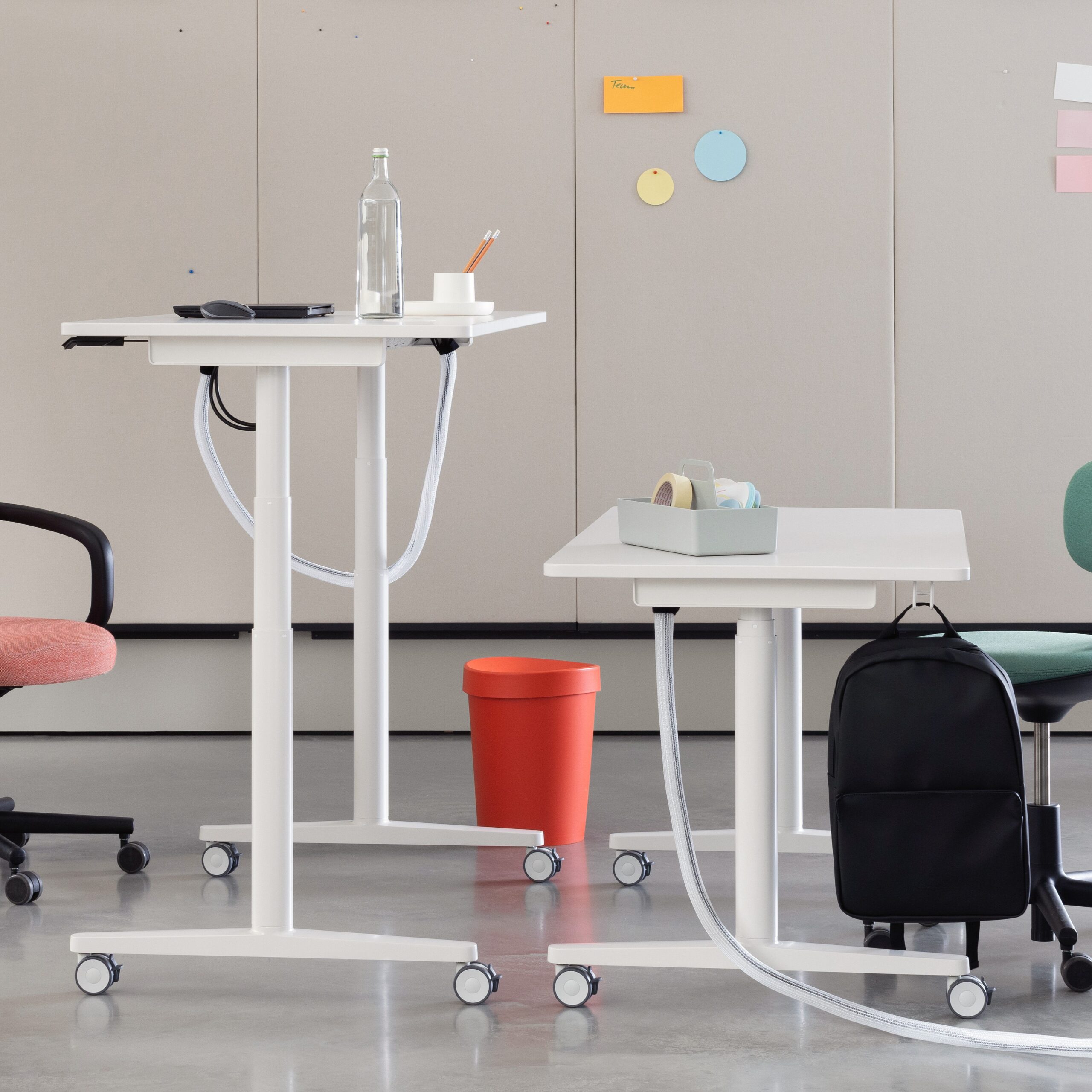 Details: 85800101, With 1 cable outlet ø 80mm on left Cable outlet: plastic, basic dark Base: powder-coated in deep black Electrification: IT norm Under-table electrification: 4x power including distribution box Cable guide, polyester fleece: cable cover, polyester fleece, pebble grey Cable tray: not included Height adjustment: by motor 100-240V, from 650-1250mm Positioning: infinitely variable with handset Cable management: strain relief (left)