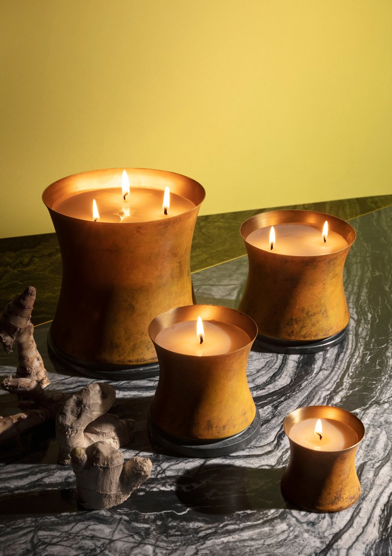 In the dark subterranean, hidden below the surface, rhizomes secretly grow and slowly develop the fresh, sharp intense fragrance of ginger. This is combined with woody Haitian cardamom to make the unique scent of Underground. Encased in a copper hand-spun vessel with a solid Banswara marble lid.