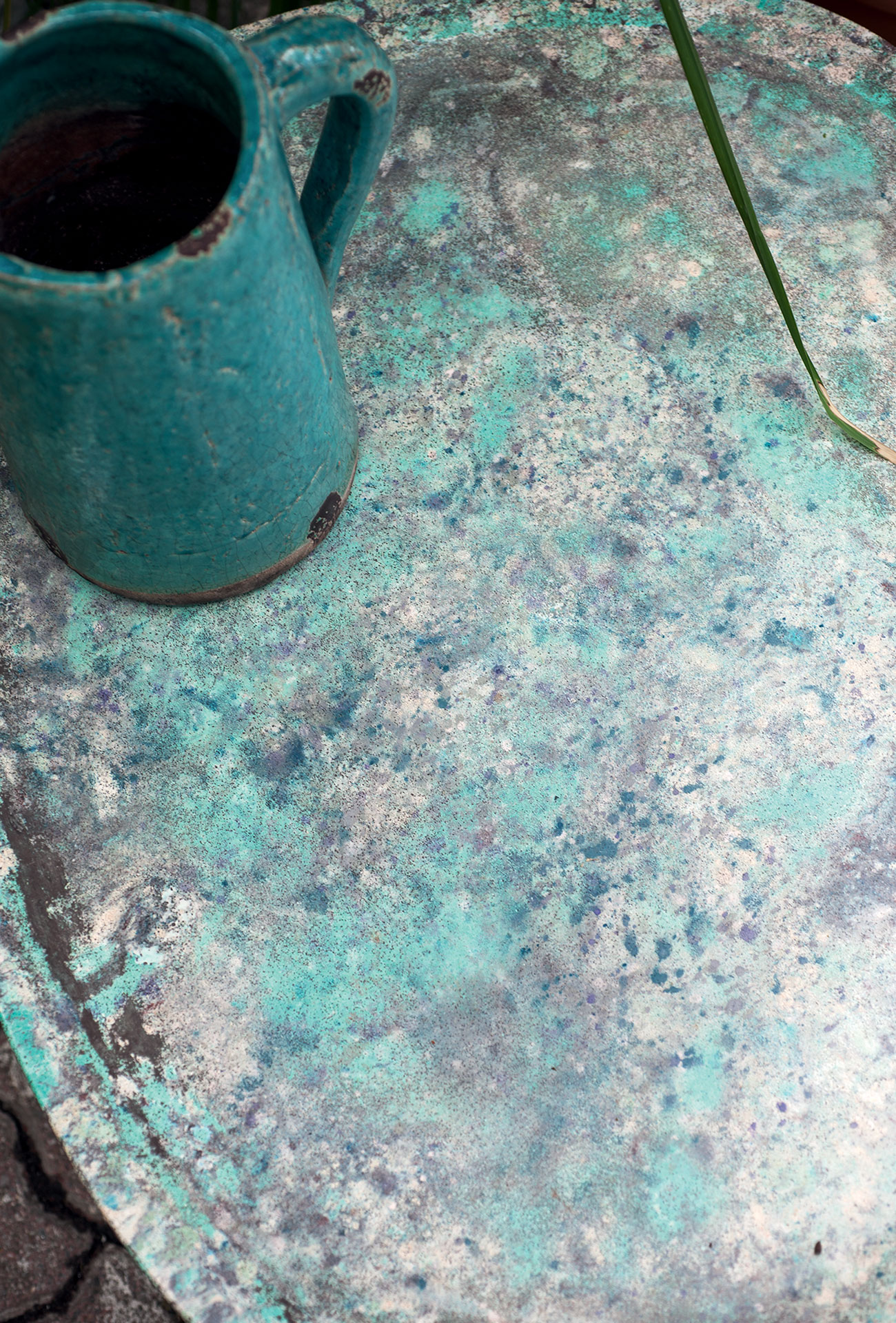 Available in matte Bianco Gioia marble, brown Cocciopesto and turquoise Cocciopesto.