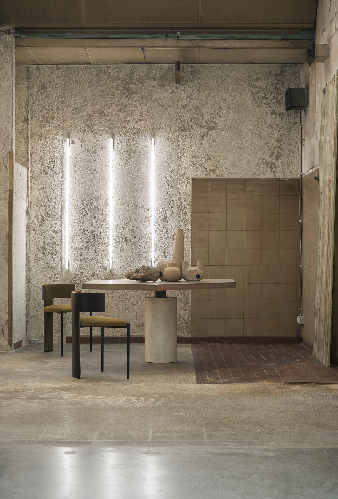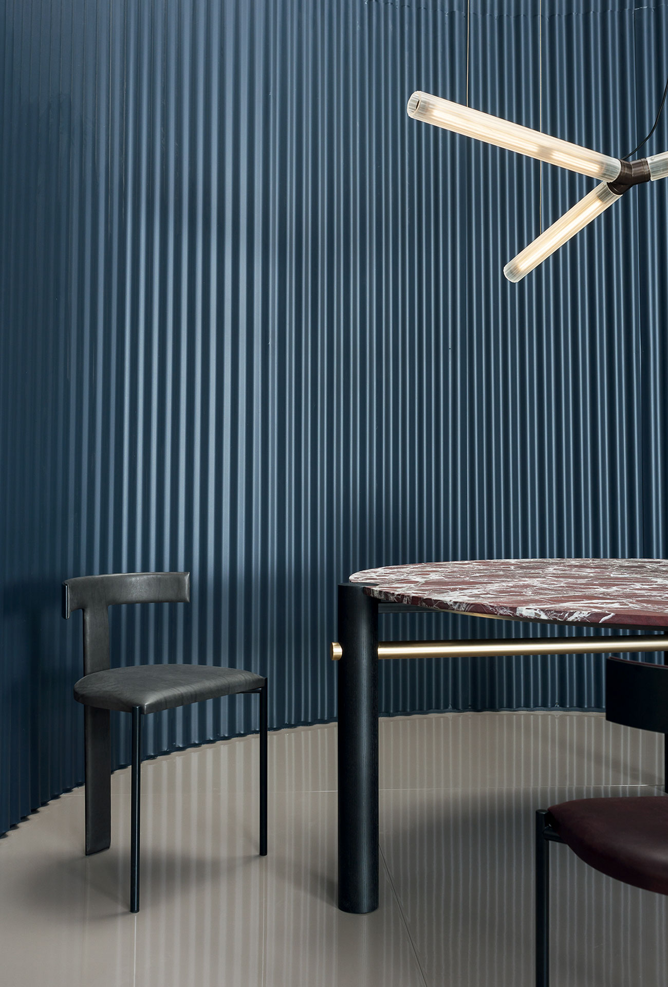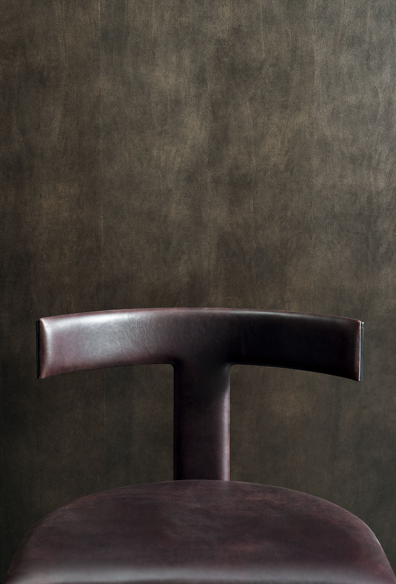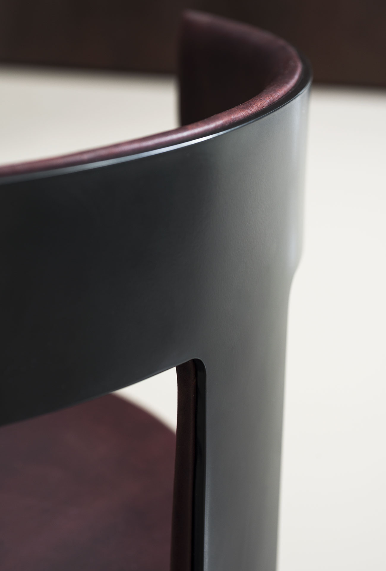 T-shaped back structure in matte black-varnished metal. Differentiated density polyurethane foam filling with acrylic fibre covering.